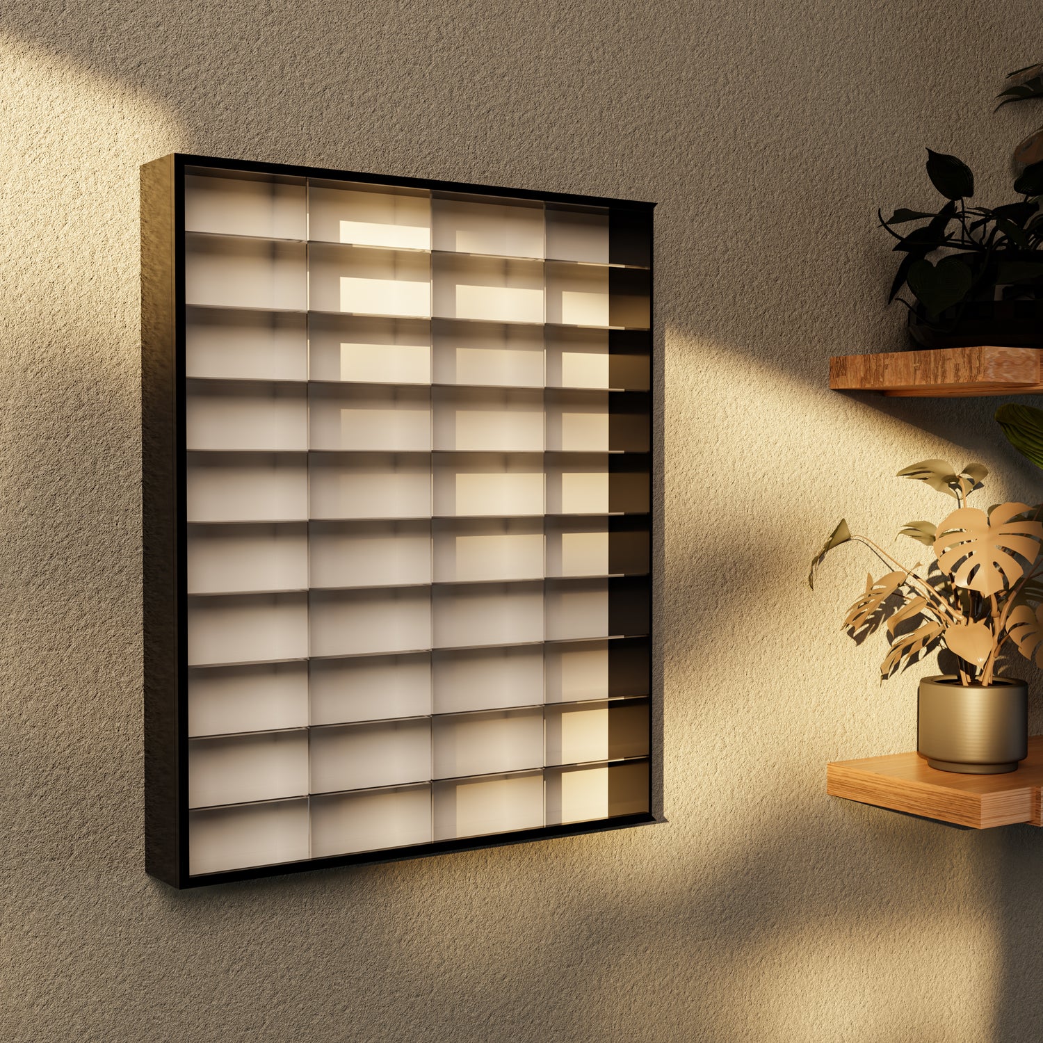 Wall-mounted and desktop acrylic shelves, with or without LEDs
